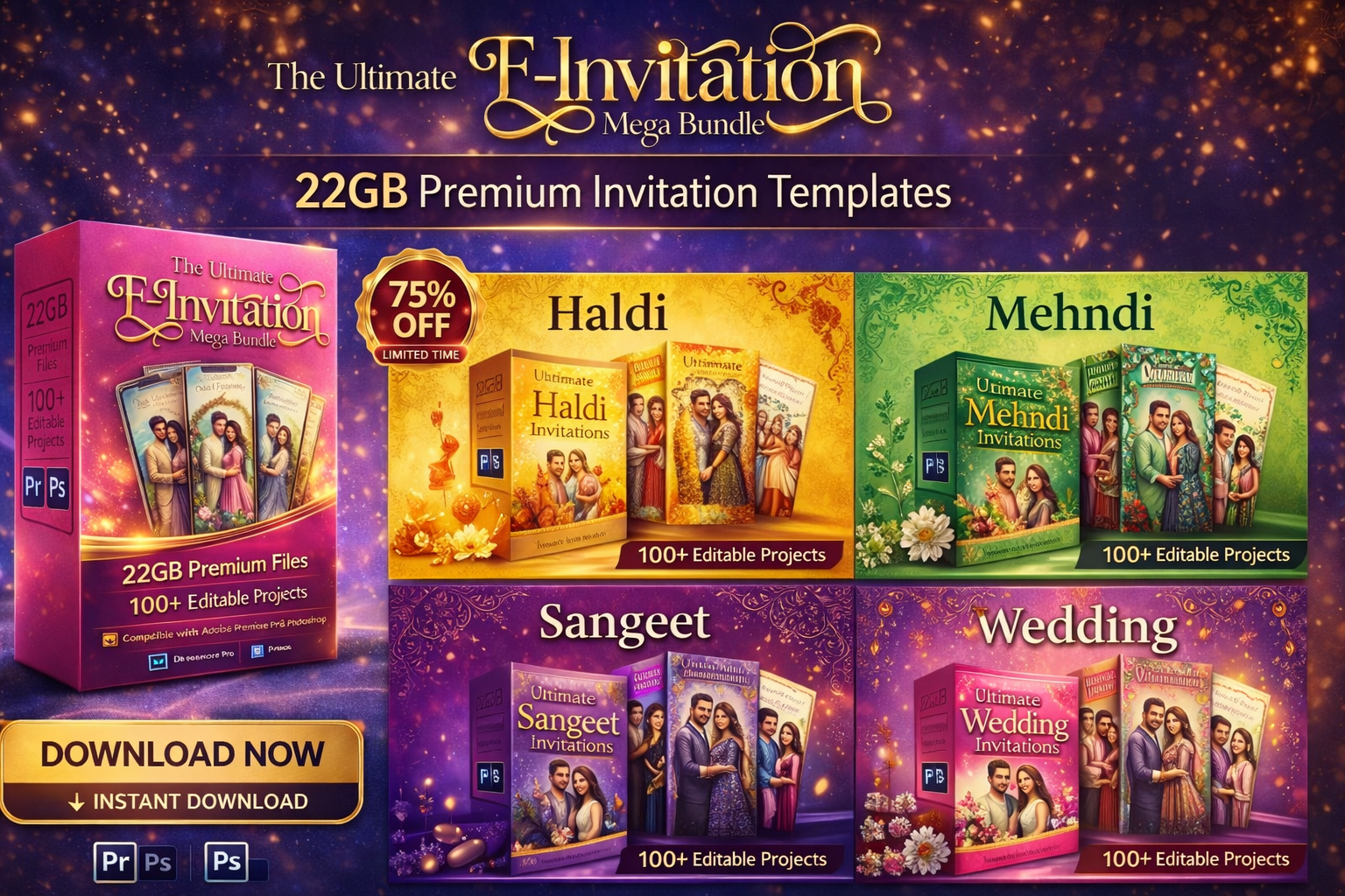 This pack is created to save countless hours of editing while helping you deliver cinematic, emotional, and professional-quality invitations your clients will love. Whether you’re a freelance editor, wedding studio, or content creator, these templates help you produce premium results instantly.